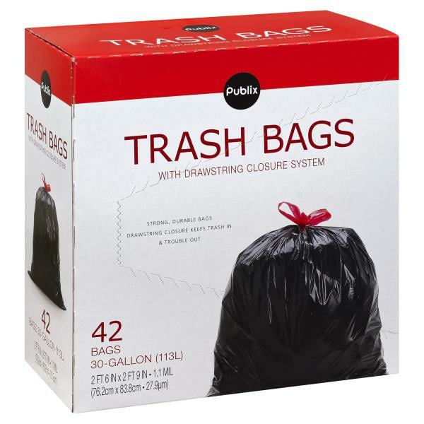Publix Trash Bags, Drawstring, 30-Gallon 1/42 bag